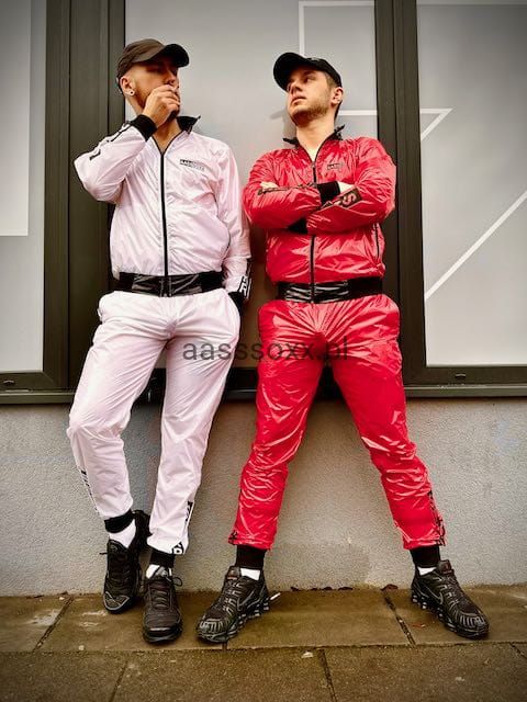 Dudes in sports sweatpants. Like it!