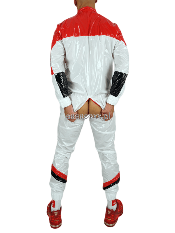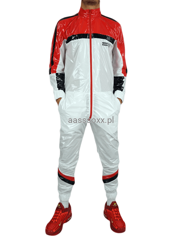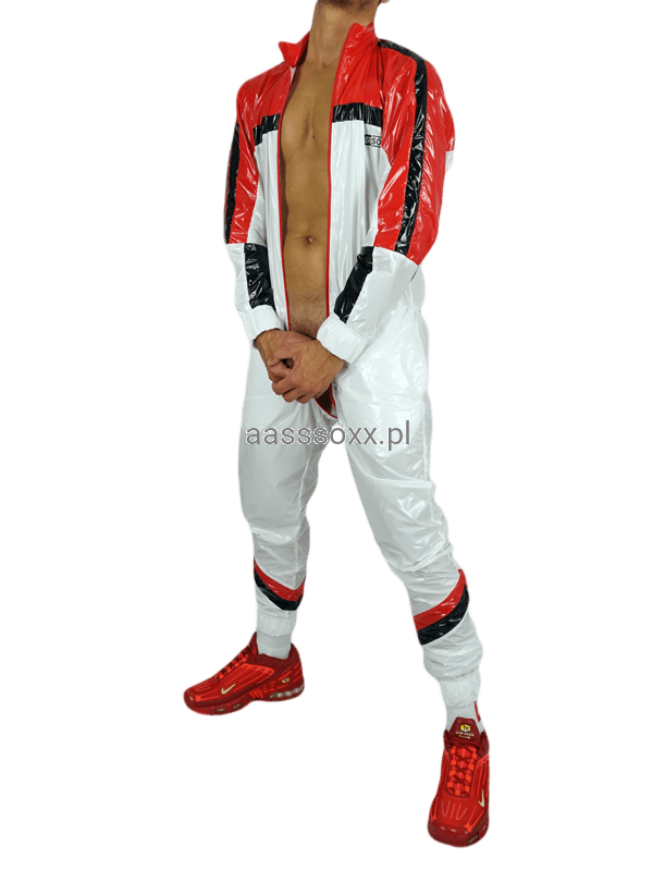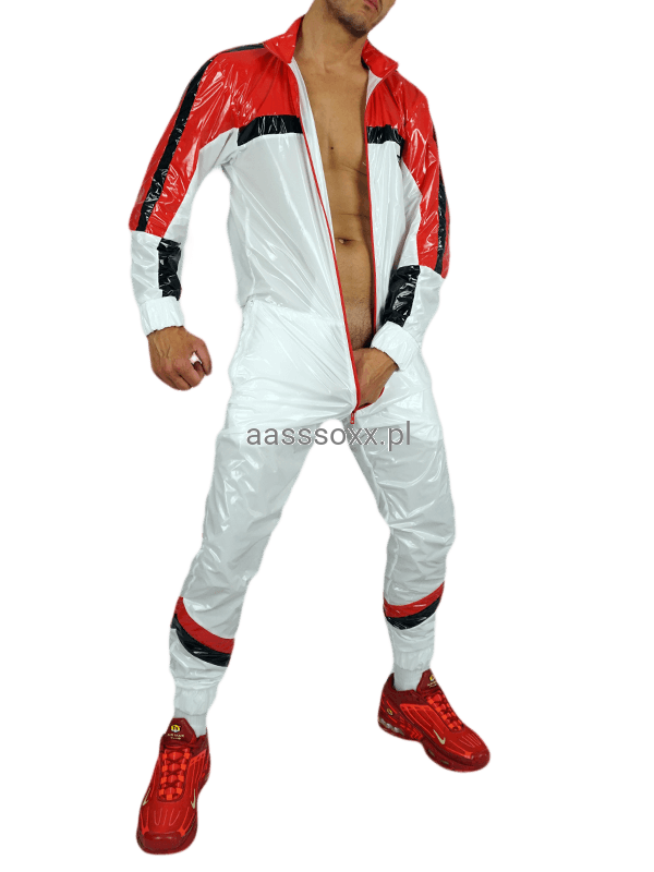 However, only them catch your attention. One in a latex tracksuit with socks on his legs, TNs and a mask on his face.