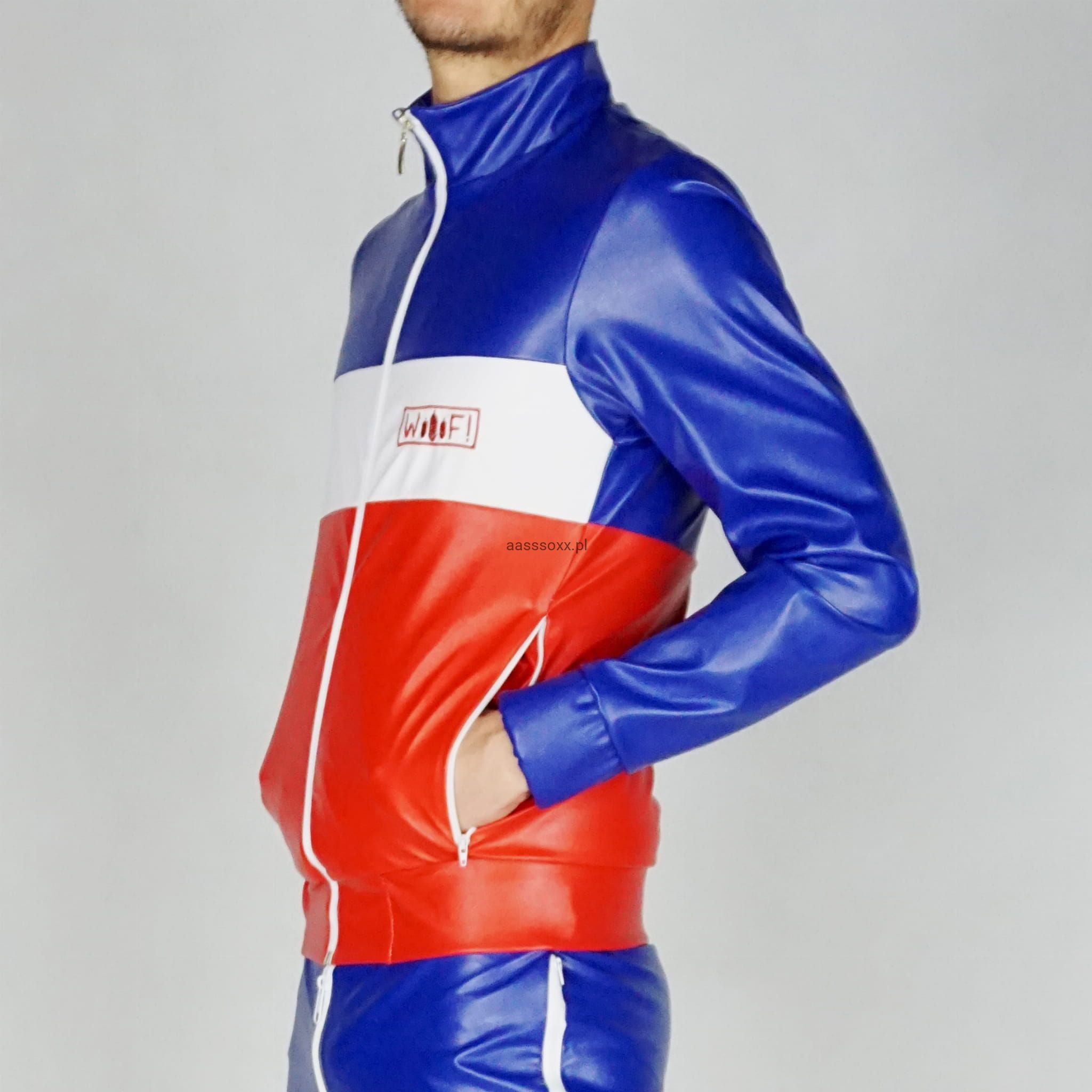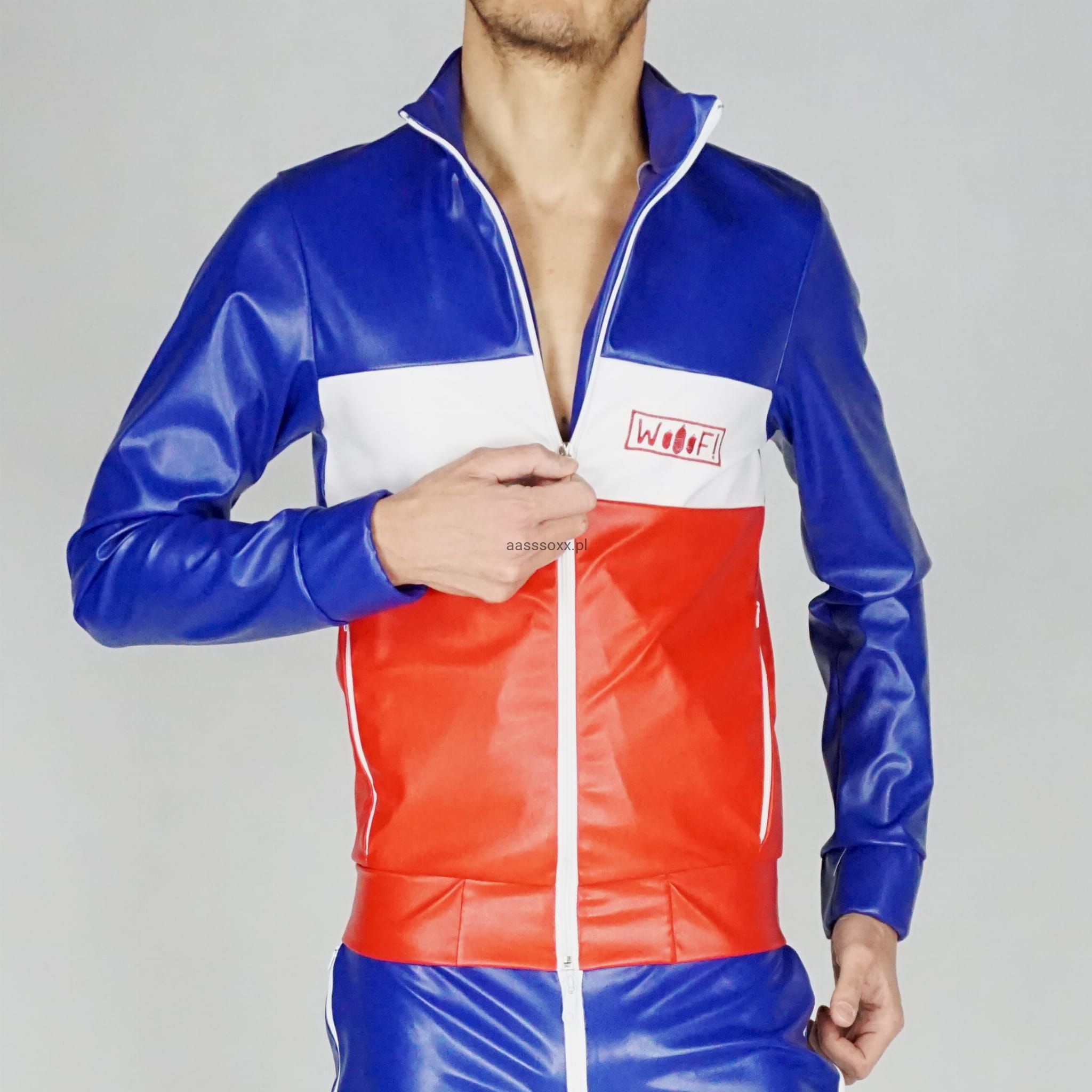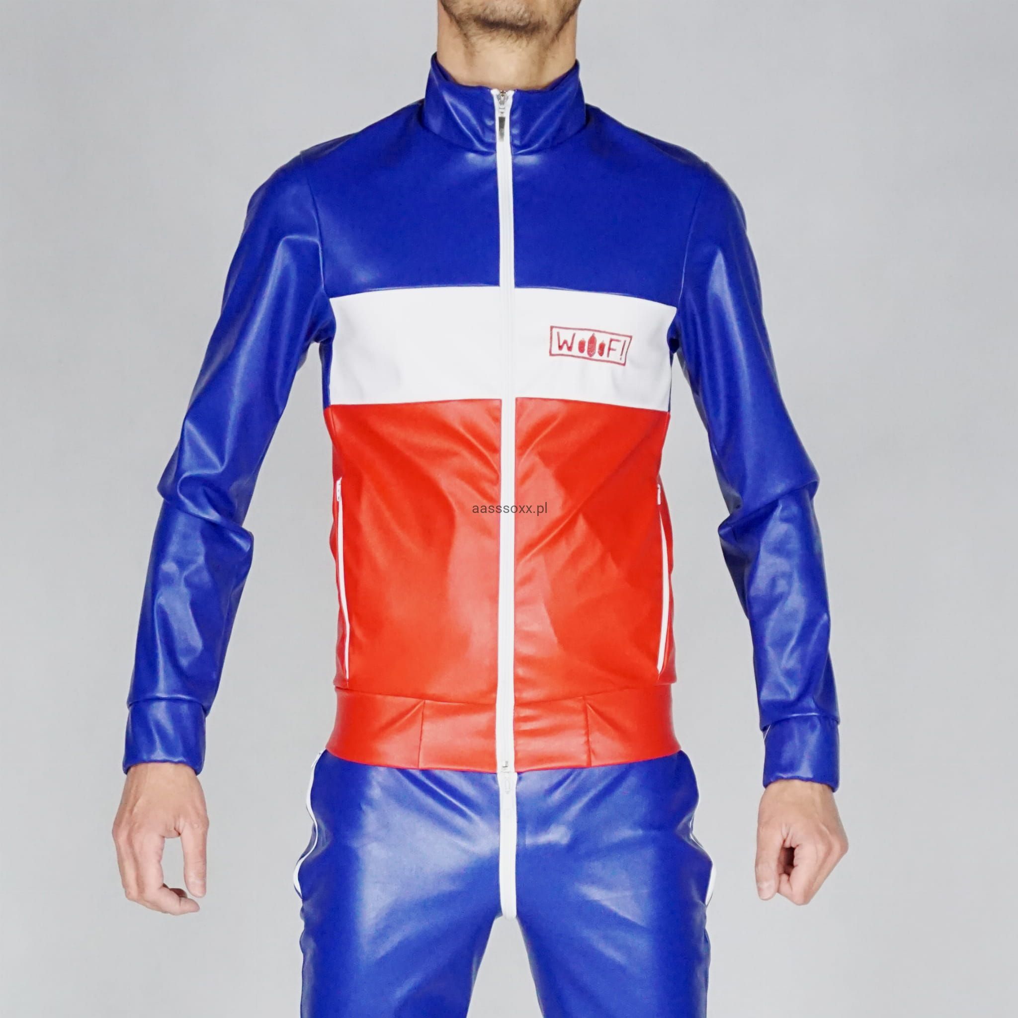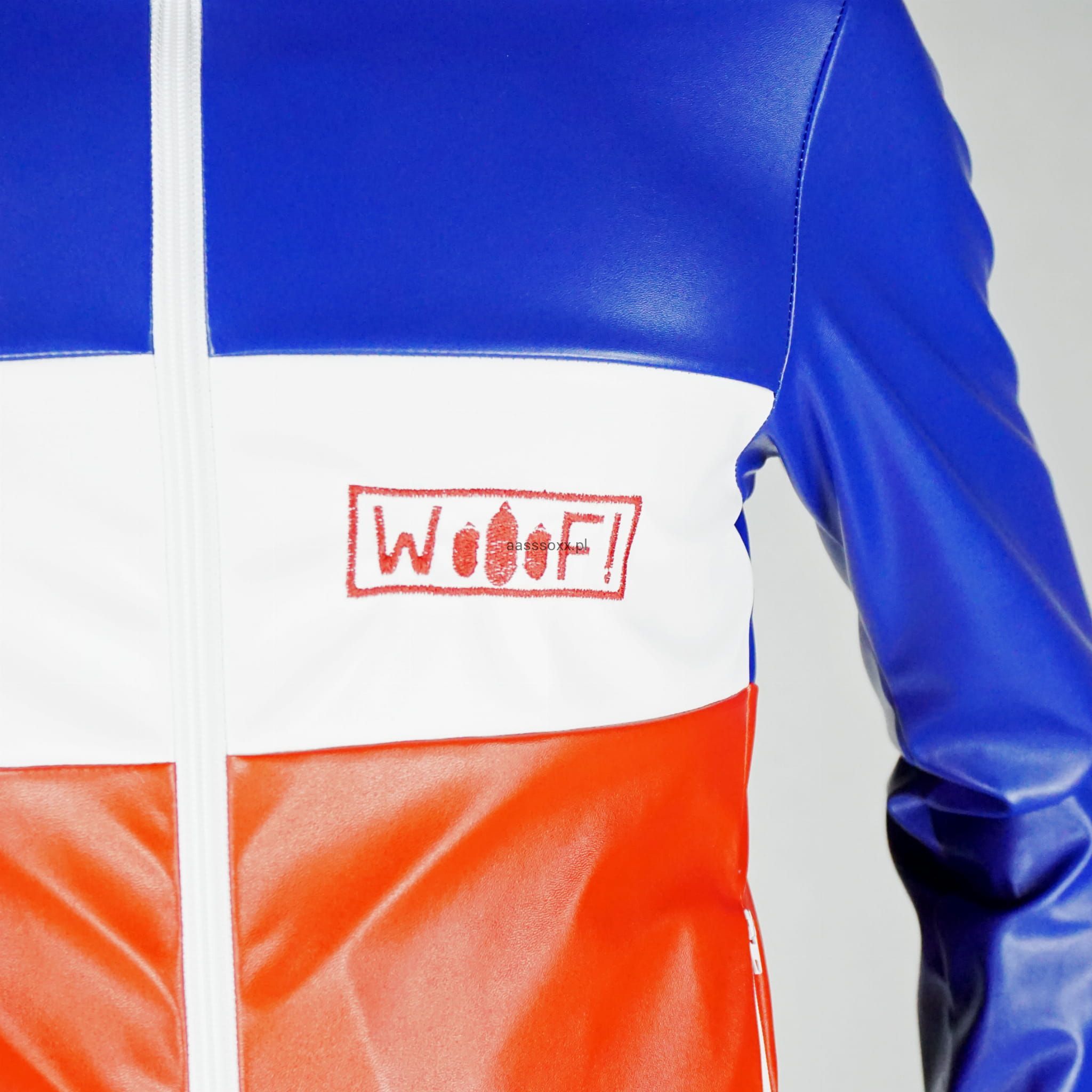 PVC Jacket WOOOF! Blue/White/Red