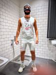 - Choose your size based on your waist or chest size. Length will be adjusted. to your height. Model in the picture is wearing size M. His measurements: Chest: 92 cm, Waist 82 cm, Hips 96 cm, Height 182 cm.